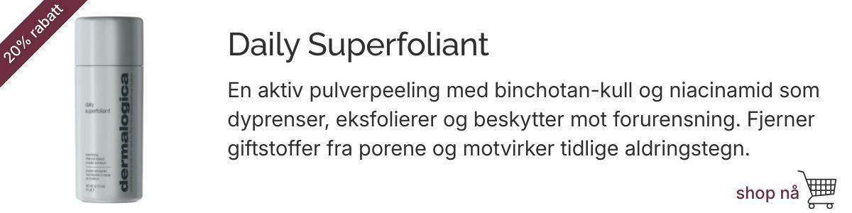 Kampanje fra Dermalogica! I hele mars sparer du 20% på alle bestselgere mot aldringstegn. Tilbudet gjelder i klinikk og i nettbutikk. Se fullstendig oversikt over salgsprodukter her.