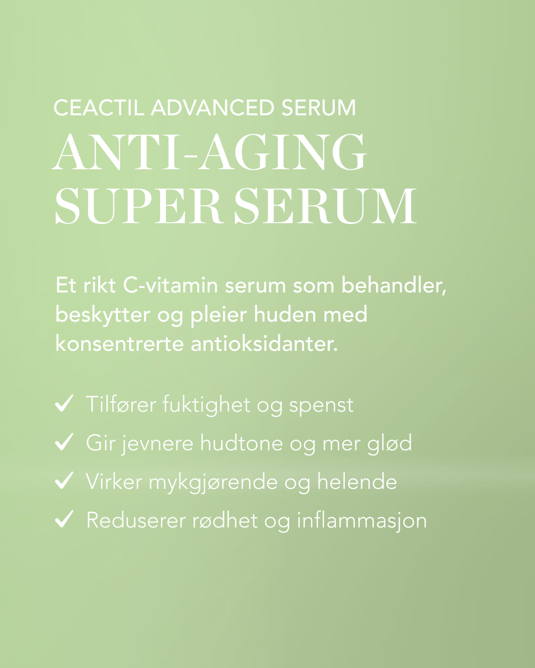 Beskytter huden mot UV-skader og nedbryting av kollagen, normaliserer hudtonen og fremmer bedre fuktighet.