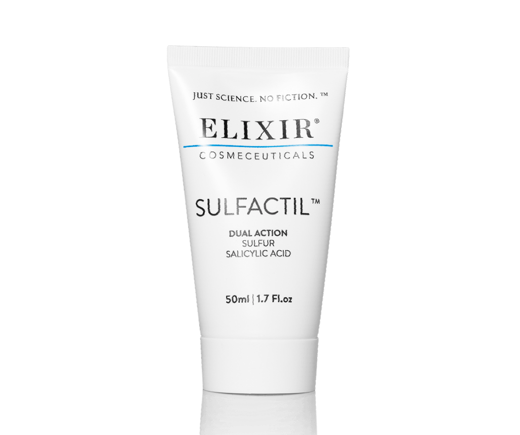 Elixir Sulfactil Cream inneholder mineralet svovel 10% og har vært brukt i en årrekke mot hudproblemer i dermatologien. Svovel 10% er et grunnstoff og har gul farge med en svak fyrstikk lukt. Den har beroligende egenskaper og virker bakterie- og parasitt-drepende. Kremen kan virke litt utørrende og bør for noen kombineres med Niactil 4% eller Hydractil Lite, men skal hovedsaklig ligge alene på huden over natten etter en god rens. Studier viser betydelig forbedring på rosacea, seboreisk eksem og 50% bedring på akne. Det er også blitt gjort studier på perioral dermatitt som viser opp mot samme resultat som bruk av antibiotika.