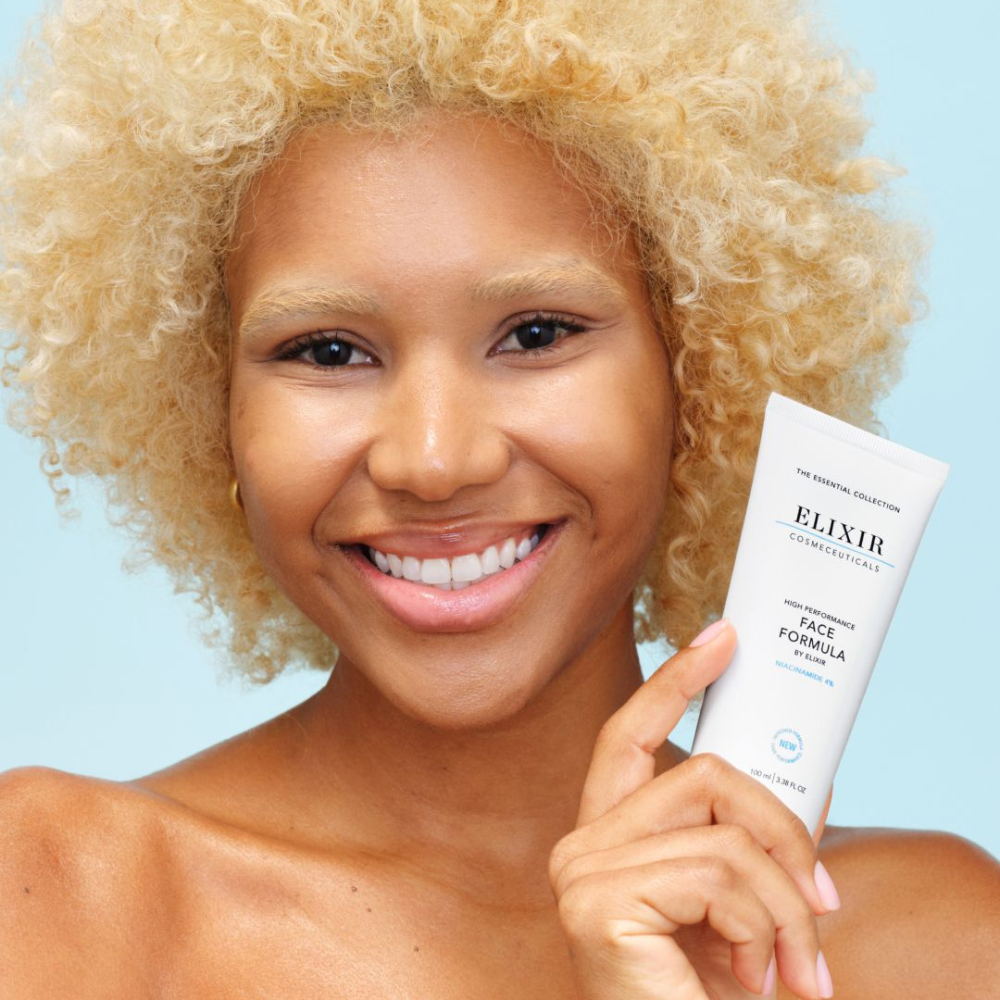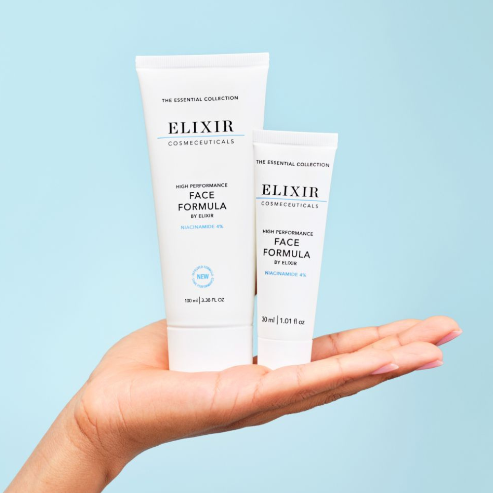 Også kjent som et B3-vitamin. Tilfører fuktighet og styrker hudbarrieren, samtidig som en normaliserer talgproduksjon, forbedrer forstørrede porer, ujevn hudtone og fine linjer. Elixir har her tatt i bruk i en svært ren niacinamide med lave nivåer av konsentrasjon av nikotinsyre. Denne syren har tidligere gjort at enkelte med sensitiv hud har opplevd noe rødhet, varme og utslett etter påføring av produkter. Med lave nivåer av nikotinsyre gjør dette Face Formula passende til også den mest sensitive hud som må bruke aktive virkestoffer med forsiktighet. I tillegg har studier vist at denne rene utgaven av