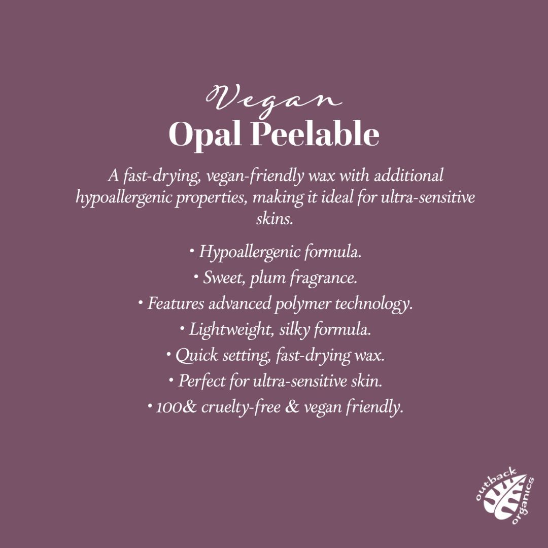 Opalvoksen påføres jevnt og tynt, uten verken "strengene" eller klebrigheten som er vanlig med naturlig harpiksvoks. På toppen av alt dette er Outback Opal også veganvennlig siden den ikke inneholder bivoks eller andre animalske biprodukter. Outback Opal bruker avansert polymerteknologi for effektiv fjerning av alle hårtyper, hvor som helst i ansiktet og på kroppen: alt fra grovt, sterkt og rotfestet hår, til fin, dunaktig fuzz. Selv korte og gjenstridige hår kan fjernes med komfort og letthet.